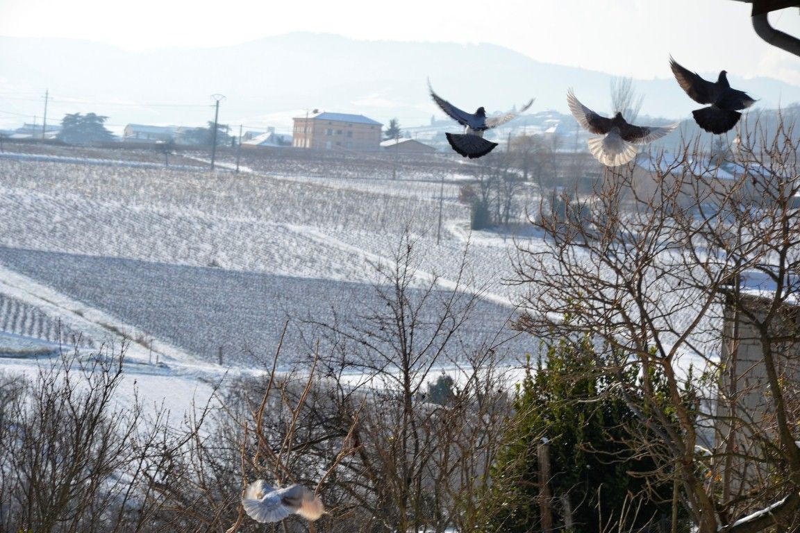 Cette semaine, la neige a fait son apparition en Beaujolais comme un peu partout en France. Les sols sont gelés et le froid permet d'assainir la vigne.